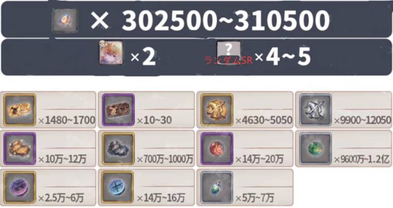 ダイヤ135000-150000個+SRキャラ4-9体+ガチャチケット合計390枚¥500 -