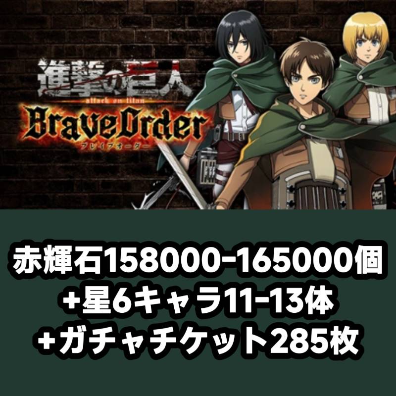 赤輝石158000-165000個+星6キャラ11-13体+ガチャチケット285枚¥950 -