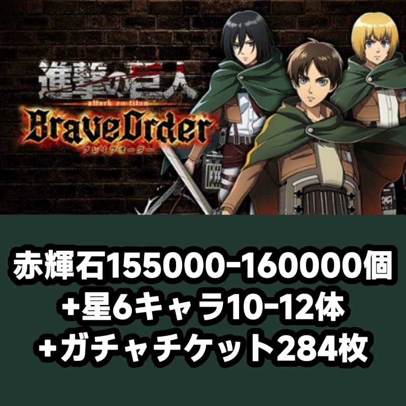 赤輝石155000-160000個+星6キャラ10-12体+ガチャチケット284枚¥850 -